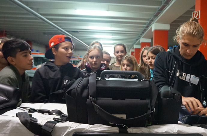 Hier lernen die Kinder weitere Inhalte und als Highlight wird ein Krankenwagen besichtigt.